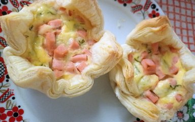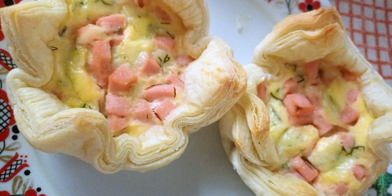 Рецепт кошиків з листкового тіста із сарделькою і сиром