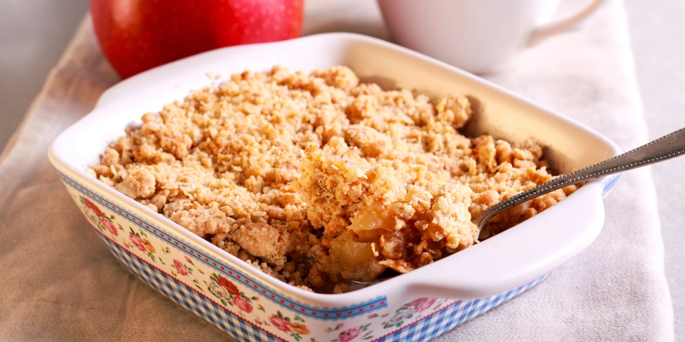 Цей дитячий варіант яблучного крамблу створений спеціально для маленьких любителів солодкого: без цукру, без тіста, без жодних алергенів. Усе, що треба, — яблуко, ложка пюре, щіпка кориці й вівсяна шапка, що стає золотистою під час запікання. У результаті маємо десерт, який пахне дитинством і готується швидко. Його можна заморозити, взяти з собою або подати теплим.