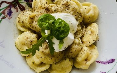 Готуємо базову домашню версію пельменів з індичкою: тісто — борошно, вода, яйце, сіль; начинка — індичка, цибуля, спеції. Родзинка — супердрібно натерта цибуля, яка працює як «волога добавка»: фарш стає м’якшим і не пересихає під час варіння. На відміну від яловичих або свинячих пельменів, індичка має більш делікатний смак — його легко підкреслити чорним перцем і щіпкою базиліку чи чебрецю (за бажанням). Подавай гарячими з вершковим маслом і сметаною або у чашці бульйону; частину заготовок зручно заморозити і мати запас на швидку вечерю.