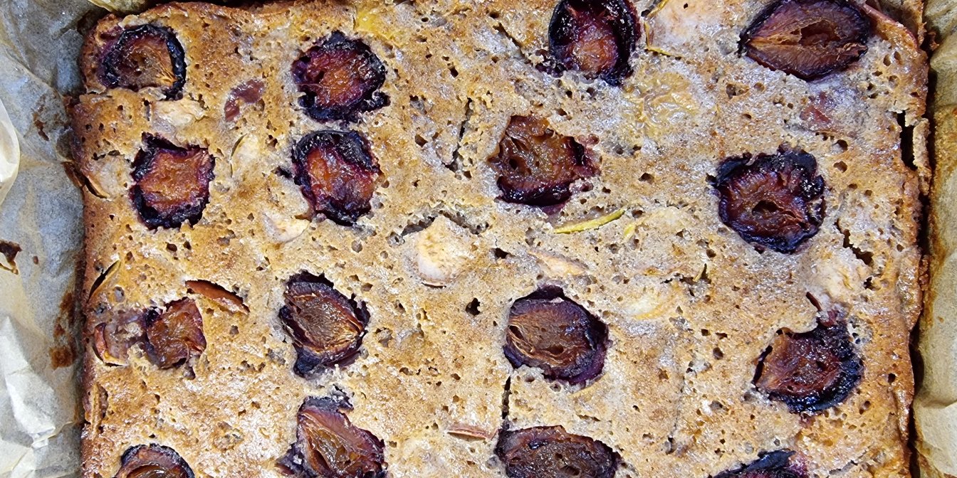 Пиріг фруктовий з цільнозернового борошна — корисний десерт із яблуками та сливами