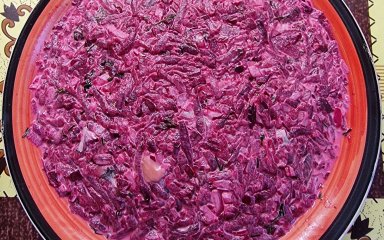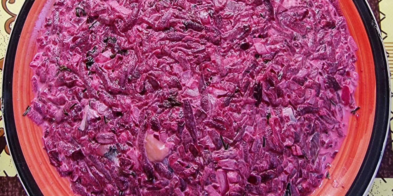 Закуска схожа на популярний салат з буряка й оселедця, тільки без маринованих огірків. Це буде проста українська закуска, яку можна намащувати на хліб. Звісно, буряк можна зварити, але він смачніший після запікання.