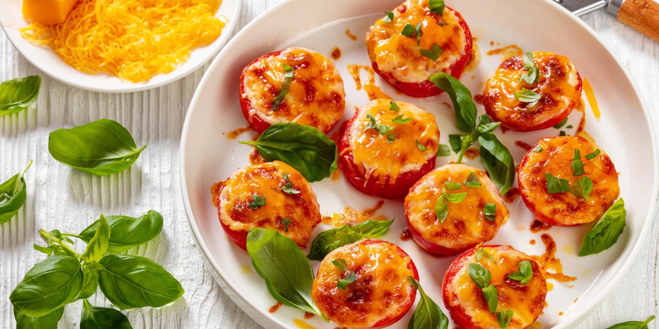 Запечені помідори з сиром — це проста страва з поживною білковою начинкою. Під час запікання томати стають м’якшими та насиченішими на смак, а сири додають солоність і кремову текстуру.