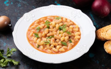 Пасту з квасолею та овочами, або pasta e fagioli, готують на овочевому бульйоні з додаванням бобових, що робить страву поживною та багатою на рослинний білок і клітковину. Має рідку консистенцію, схожу на суп, і добре насичує.