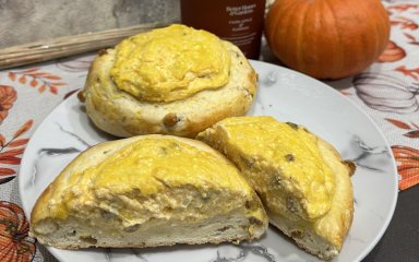 Пропонуємо рецепт з незвичайною начинкою від читачки Ольги. Отже, класичні ватрушки із сиром матимуть помаранчевий відтінок. У начинку додамо гарбузове пюре і родзинки до смаку. Тісто замішуємо на молоці та пресованих дріжджах.