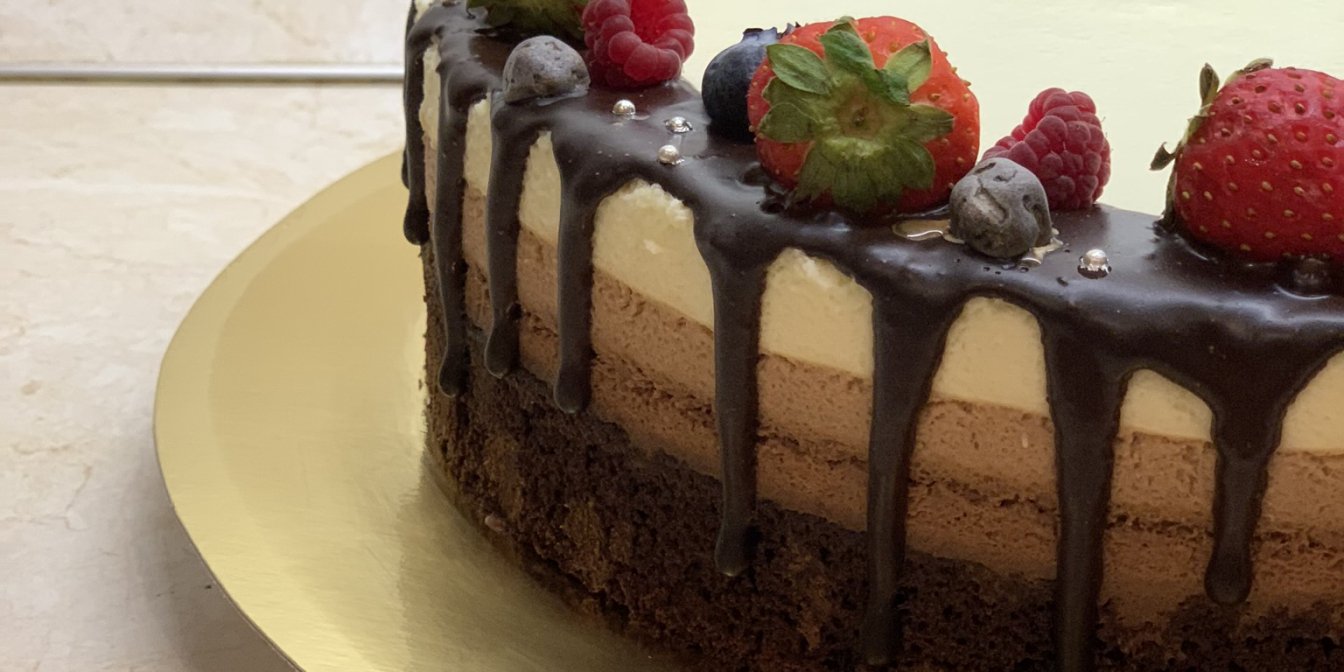 Торт «Три молока» — це мусовий торт без випікання: основу з печива просто утрамбовуємо й охолоджуємо. Кожен шар — окремий мус на вершках із невеликою кількістю желатину, що гарантує чіткий зріз і м’який ефект «танення» у роті. Порядок шарів — від темного до білого — підкреслює градацію смаку: насичений какао, м’якший молочний і делікатний білий. Подавай добре охолодженим; різати торт варто гарячим сухим ножем, тоді красивішим буде зріз.
