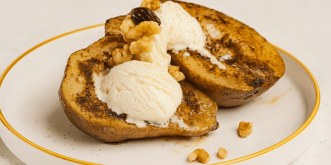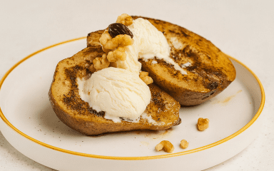 Щоб зробити цей десерт, потрібно намастити розрізані груші сумішшю з масла, цукру та кориці. Подаємо готові груші з морозивом і волоськими горіхами. Якщо любиш випічку з грушами, то цей рецепт для тебе!