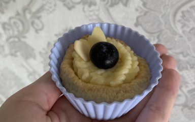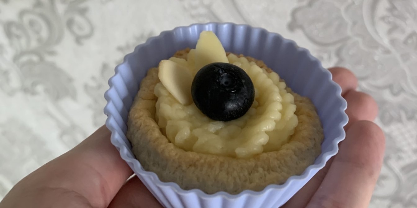 Готуємо класичне пісочне тісто сабле: багато масла, мінімум замішування — завдяки цьому тісто крихке й хрустке. Основа підпікається з вантажем, щоб зберегти форму й не дати «сповзти». Заварний крем — на молоці з жовтками та крохмалем: виходить щільний, але ніжний, тримає форму в кошиках і не розтікається. Для свіжості додаємо зверху лохину та мигдалеві пластівці; на бажання — тонкий шар ягідного джему на дні, який також «ізолює» тісто від вологи крему.