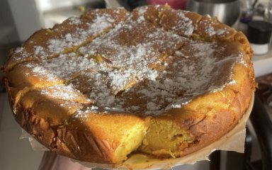 У нас є популярний пиріг «Апельсин» на розпушувачі. На відміну від нього, у цьому рецепті немає розпушувача. Тому важливо дотримуватися кроків приготування, щоб тісто піднялося. А саме — добре збити білки й жовтки.
