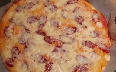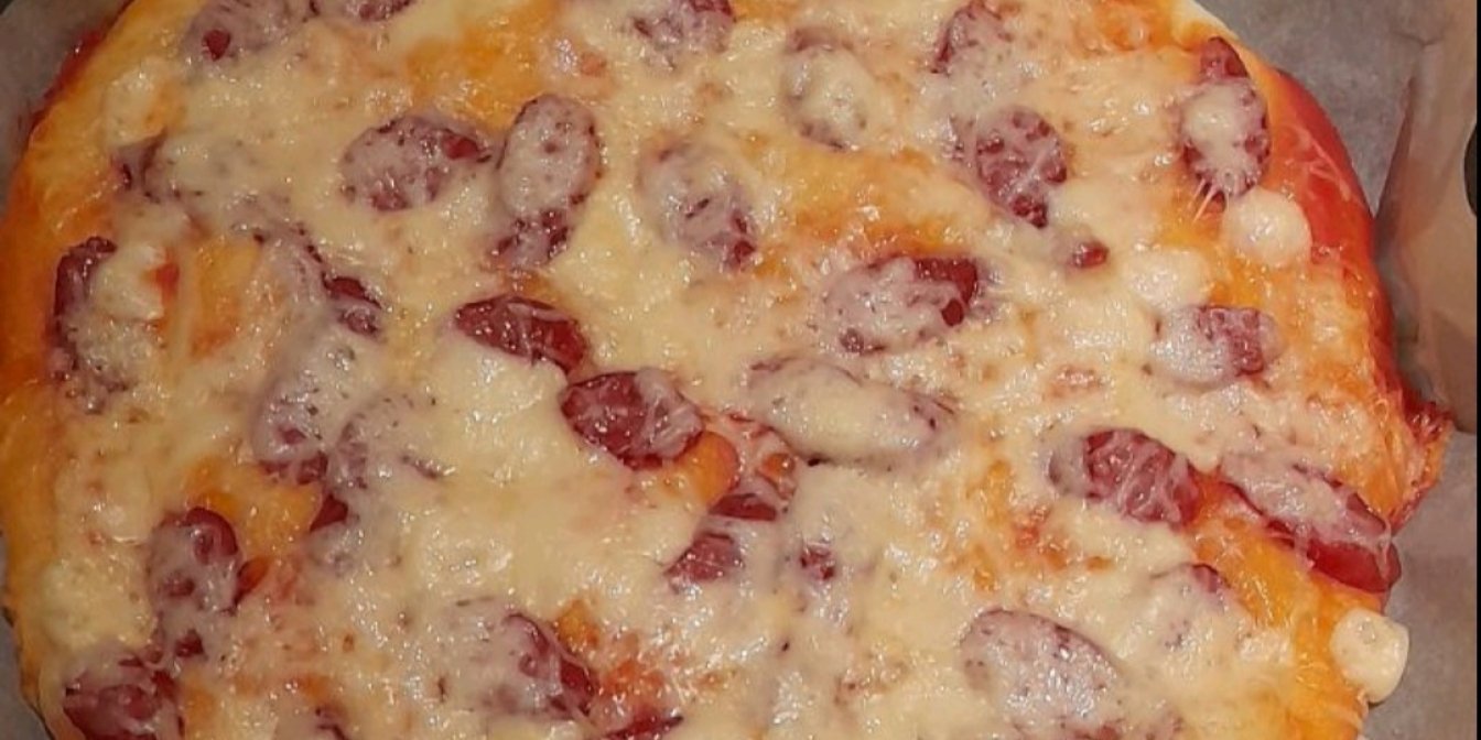 Це буде один з простих рецептів для домашньої піцерії. Після замішування тіста на теплій воді та сухих дріжджах залишимо його підійматися на 30 хвилин. Авторка піци Надія Стасюк пропонує взяти улюблену начинку. У нас буде піца з моцарелою, ковбасою або вареною куркою.