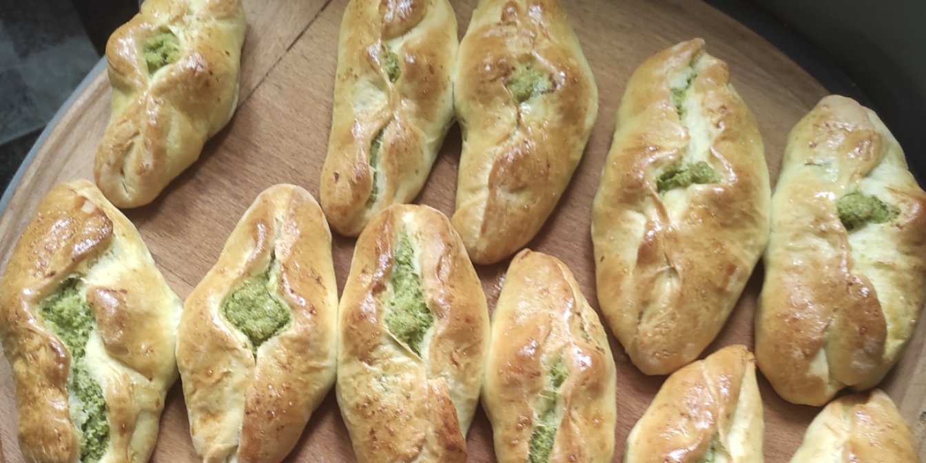 Підйом перед випіканням: виклади пиріжки на деко, застелене пергаментом, швом донизу. Залиш піднятися на 20 хвилин.