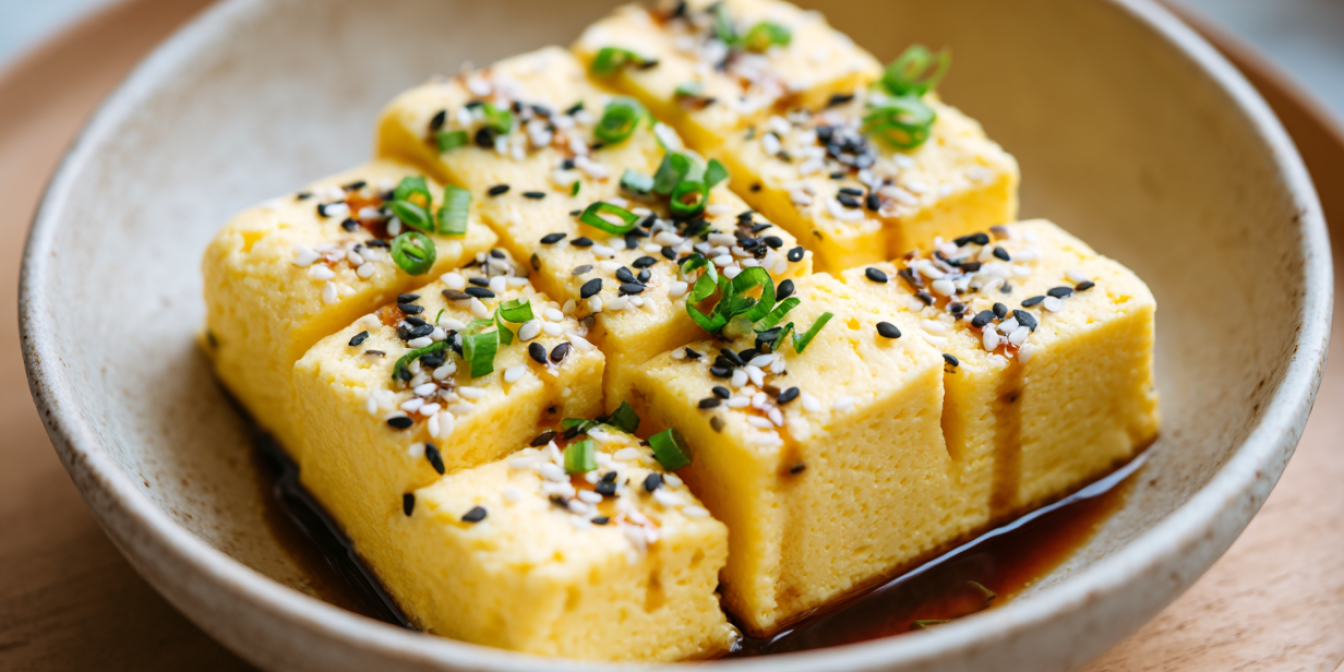 Спробуй рецепт японського омлету на водяній бані — це легка страва з двох яєць, яку готуємо без сковорідки й без олії. Яйця збиваємо, заливаємо окропом, запікаємо на пару. Подаємо з соєвим соусом, зеленою цибулею та кунжутом — чудова ідея для легкого обіду чи ранкового перекусу.