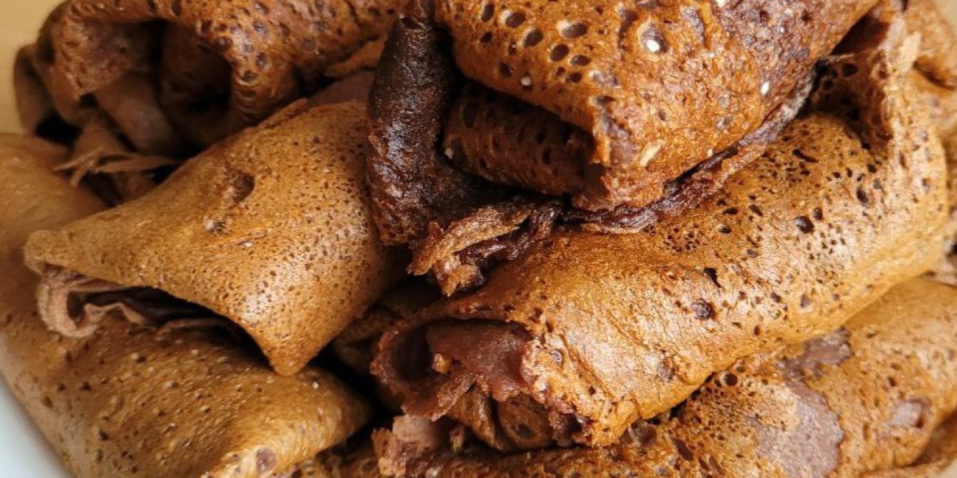 Шоколадні млинці із сирно-карамельною начинкою — рецепт на молоці