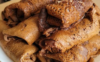 Невелике уточнення про начинку: поєднаємо кисломолочний сир і готову солону карамель. Але замість неї може бути згущене молоко — звичайне або варене. Це рецепт млинців на молоці з додаванням какао. Рецепт шоколадних млинців із сирно-карамельною начинкою ми отримали від Тетяни Молчанової.
