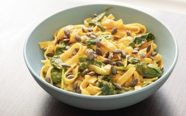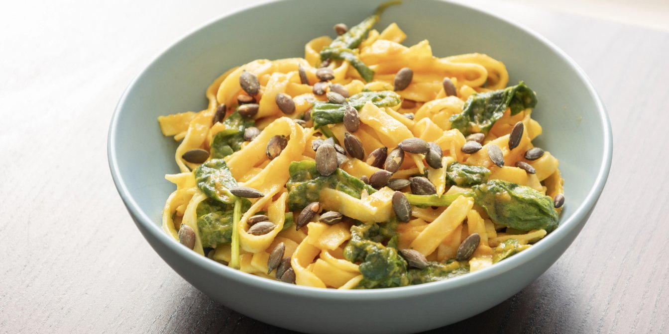 Паста з гарбузом, шпинатом та 3 видами сиру — осінній рецепт на вечерю
