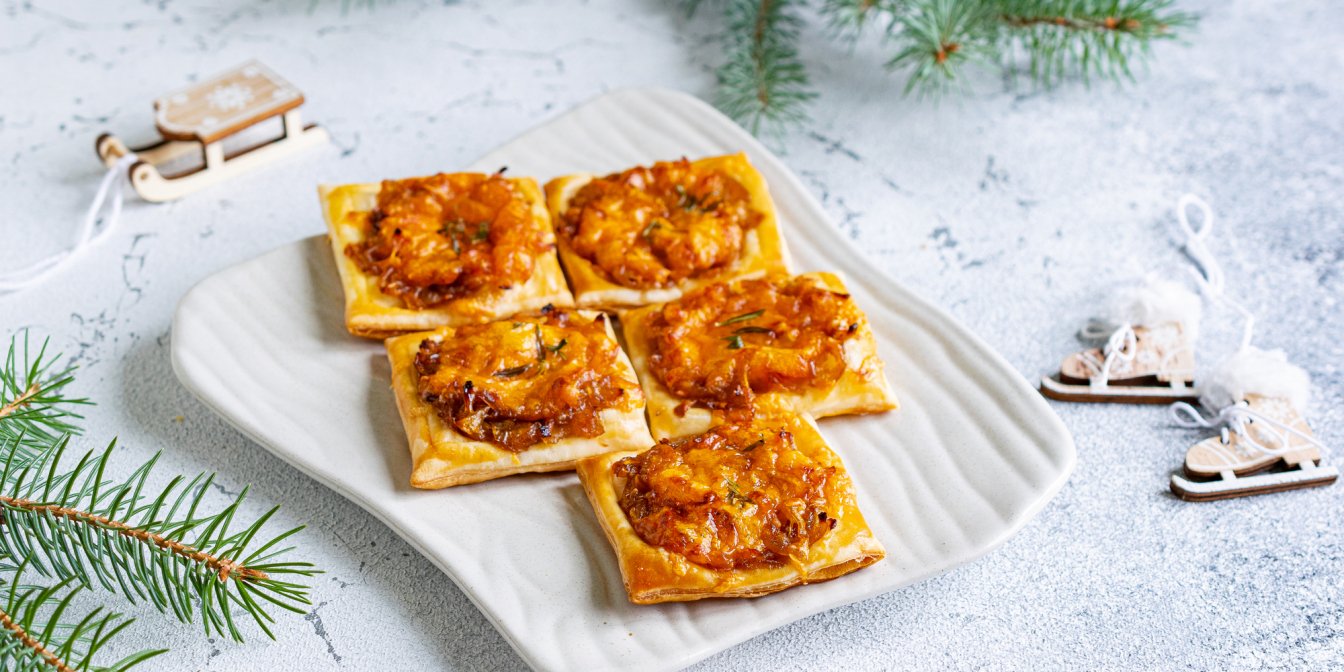 Закуска з листкового тіста з цибулевим чатні — хрустка випічка з сиром та спеціями