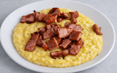 Готову страву накрий кришкою і дай відпочити декілька хвилин. Подавай банош порційно з бринзою/сиром, шкварками, грибами або м’ясом. Дізнайся, як готує банош Марко Черветті й смачних страв!