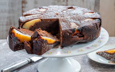 Смачного! Цей десерт поєднує легкість шоколадного суфле й соковитість запечених груш — у підсумку виходить ніжний, трохи вологий пиріг без борошна, який смакує і теплим, і охолодженим. Що ще спробувати: