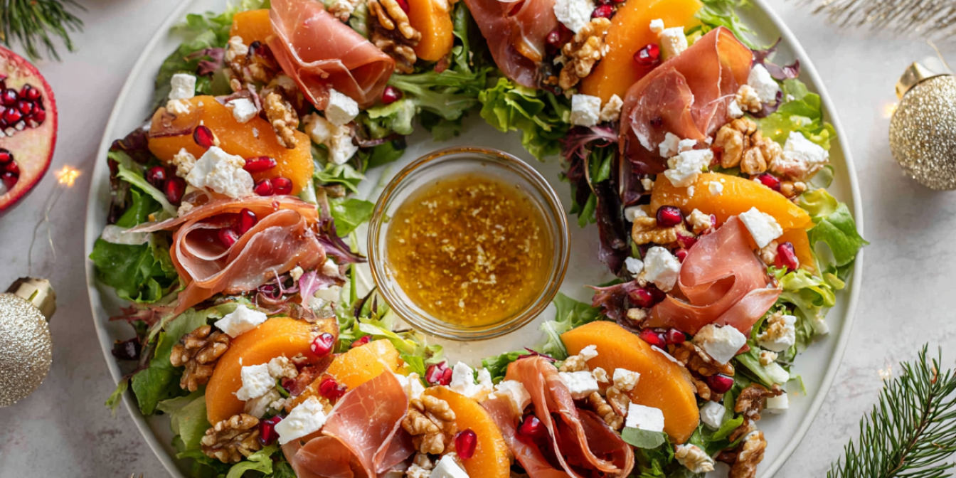Салат-вінок із хурмою, хамоном і фетою — святковий рецепт із яскравою подачею