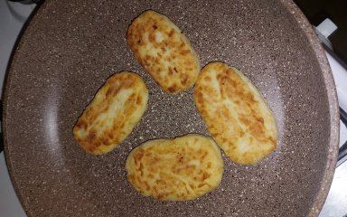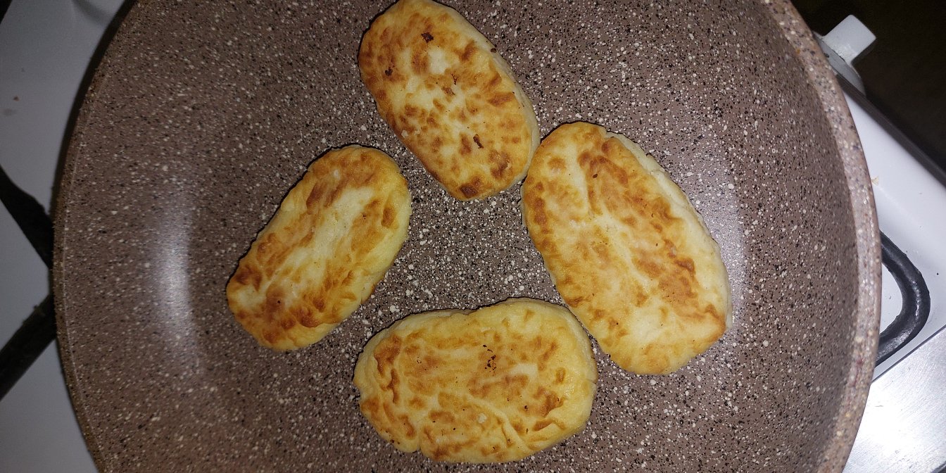 У нас будуть швидкі картопляники без начинки. Авторка Олена Леонідівна пропонує рецепт на дві-три порції. До відвареної картоплі додамо борошно та яйце. Смажимо на сковороді.