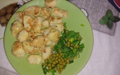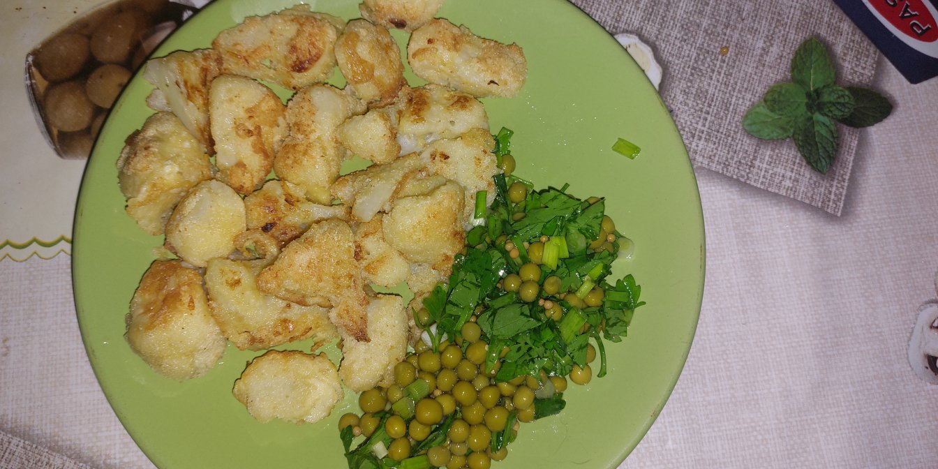Готуємо цвітну капусту в клярі та подаємо з гарніром з горошку