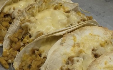 Лови рецепт ситної мексиканської страви — тако з куркою, точніше, з курячим фаршем. Його обсмажимо з улюбленими спеціями, додамо консервовану квасолю, бажано в томатному соку, та кукурудзу. Автори рецепта пропонують подавати мінітако з курячим фаршем і квасолею разом із соусом на основі йогурту й солоних огірків.