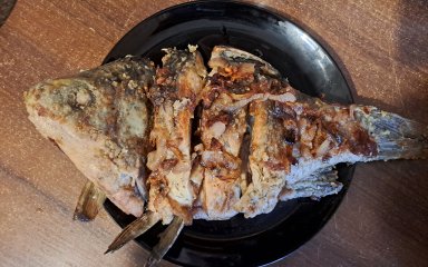 Карась — риба з високим вмістом білка, практично не жирна. Оксана Семенчук пропонує посмажити цілу рибу, попередньо обвалявши в борошні. Подавати смаженого карася по-домашньому вона радить зі смаженю цибулею.