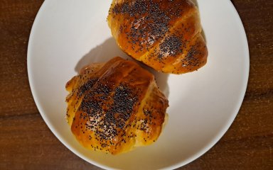 Авторка рецепта Оксана Семенчук пропонує формувати булочки з маком у вигляді круасанів. Макову начинку використовує готову. Тісто підіймається двічі: після замішування та під час вистоювання перед випіканням.