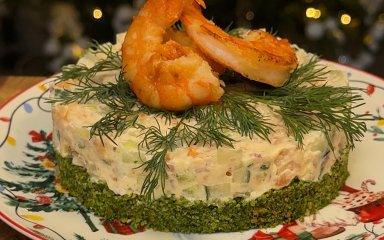 Салат з креветками на Новий рік — покроковий рецепт з відео