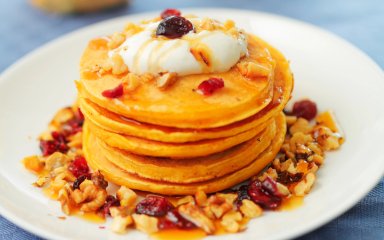 Виклади панкейки на тарілку, додай грецький йогурт, фрукти чи полий медом.