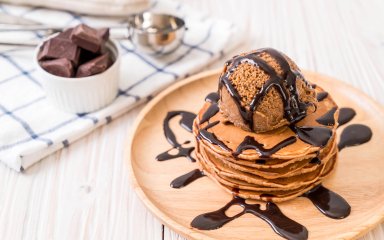 - При додаванні кави ретельно перемішуй тісто, щоб кава добре розчинилася. Заради експерименту можна зробити сирні панкейки (оладки) з яблуком.