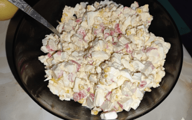 Крабовий салат на свято — це класика. Цей рецепт ми отримали від Дениса Бучаки. Автор називає такий салат «крабов’є».