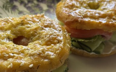 Для начинки авторка рецепта пропонує крем-сир або вершковий сир, слабосолену червону рибу та свіжий огірок. Але можеш подавати бейгли з лососем і голландським соусом або додати в середину бейглів хумус, шинку та сир.