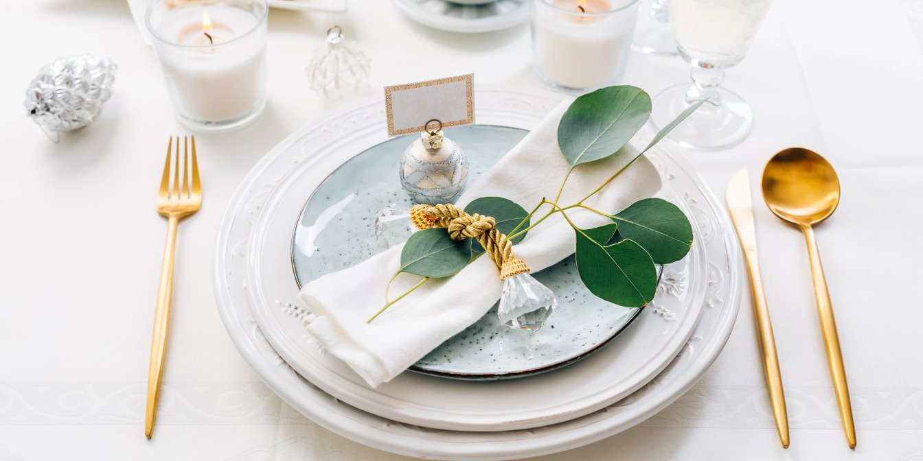 Святкове сервірування виглядає цілісно, коли на столі є обмежена колірна гама. Вибери 2-3 основні кольори й працюй із ними: наприклад, білий + зелений + золотисті акценти або ж натуральні відтінки — беж, теракотовий, глибокий зелений.