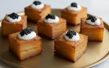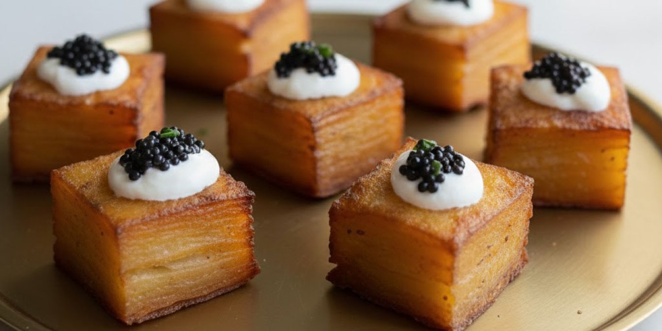 Картопляний мільфей — це солона закуска, яка за способом приготування схожа на класичний французький десерт. Тут тонкі скибочки картоплі, вершки й масло складають шарами, запікають, а потім нарізають кубиками й обсмажують до хрумкої скоринки. Закуска виглядає святково, а готується з простих інгредієнтів.