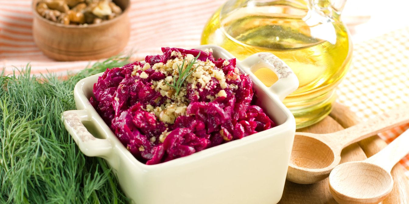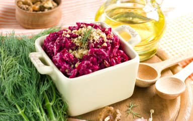 - Горіхи додають саме до буряка — 30–40 г, не більше, щоб не перебити смак.