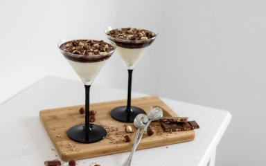 У другу частину додай какао та решту розтопленого желатину. Перемішай до гладкої маси.