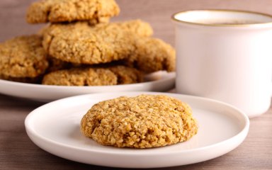 Вівсяне печиво готується без яєць з бюджетних продуктів, без експериментів та складних технік. Треба лише перемолоти вівсяні пластівці в борошно, родзинки змішати з водою та перетворити на пасту, а мед і масло просто додати в тісто до домашнього печива для аромату та смаку.