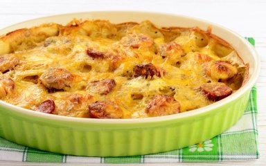 Нам подобаються і ці три рецепти, куди потрібні картопля та ковбаски. Страви запікаються або тушкуються: