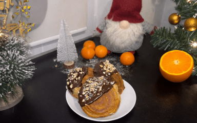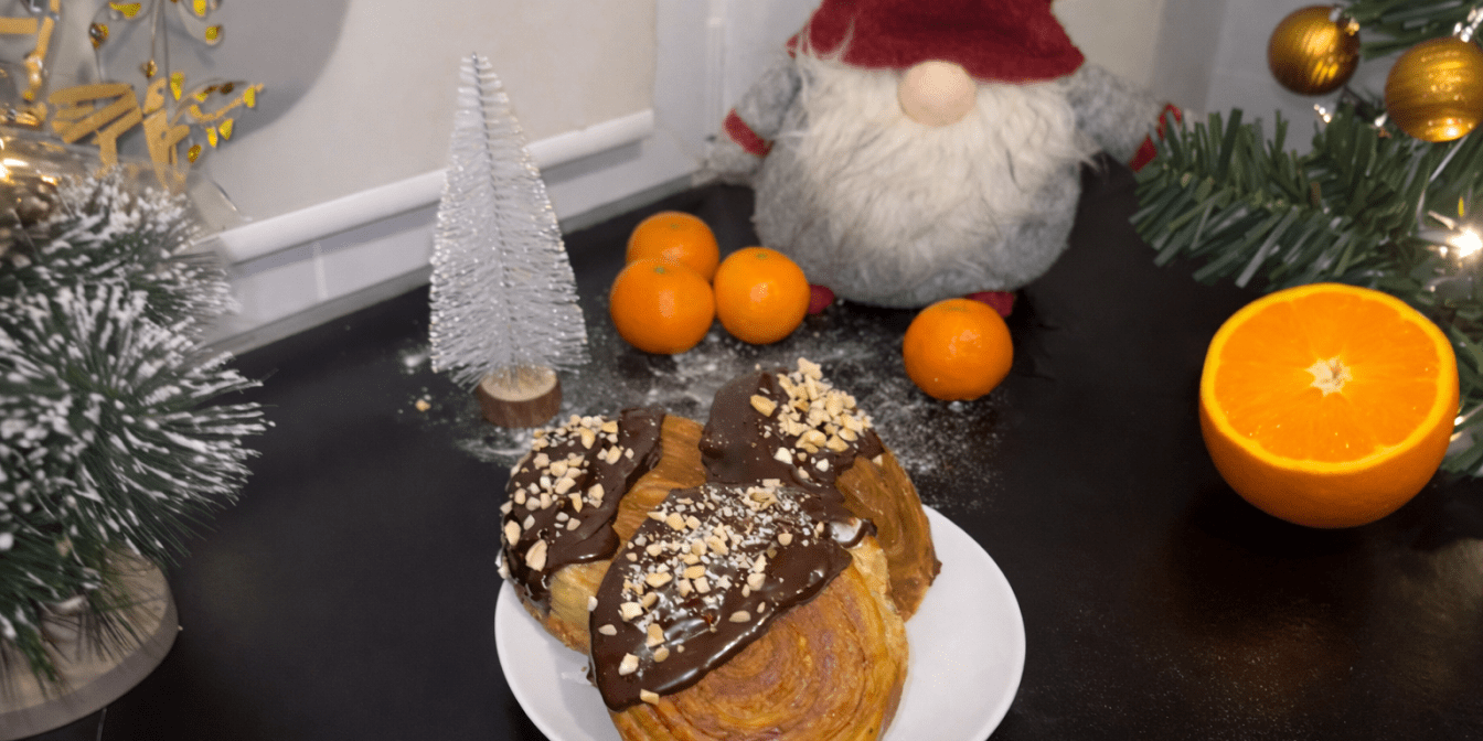Булочки-равлики з мандаринами та кремом готуються з готового листкового тіста, швидко формуються та випікаються до румʼяної скоринки. Формою вони нагадають круасани чи сінабони. А всередині у них ніжний крем на основі вершків і сиру маскарпоне з мандариновим пюре. Прикрасити десерт можна розтопленим шоколадом з горішками.