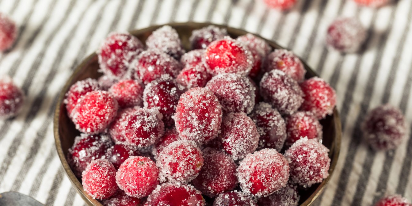 У цьому рецепті ягоди не варимо, а лише занурюємо у цукровий сироп, так вони збережуть форму та текстуру. А потім потрібно перекласти журавлину в тарілку з цукром, щоб сформувався хрумкий та солодкий шар, схожий на сніг.