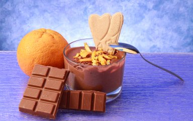 Цей шоколадно-апельсиновий пудинг готується без желатину та духовки. Печиво — основа, зверху — ніжна шоколадна маса на кокосовому молоці, а апельсиновий сік і цедра додають легкий цитрусовий аромат та святковий настрій. Смак виходить насичений, але не важкий, трохи схожий на густий шоколадний крем.