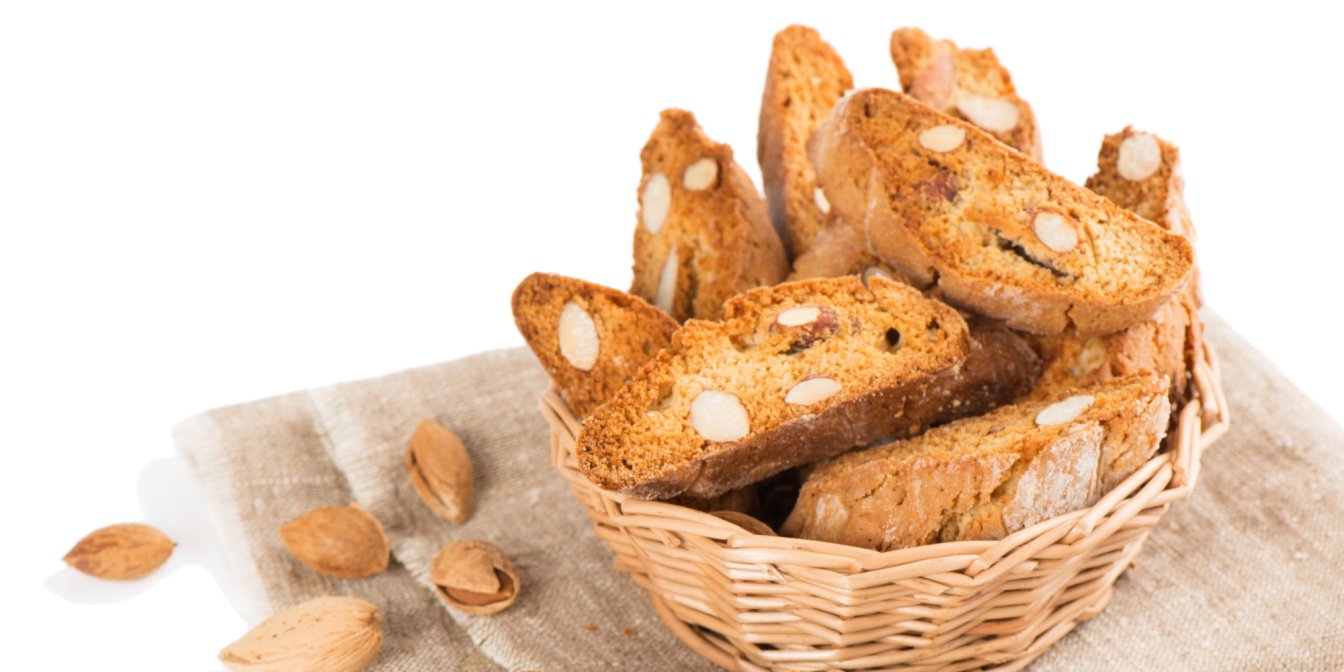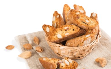 Біскоті — традиційне італійське печиво з мигдалем, яке випікається двічі. Завдяки такому способу приготування, печиво виходить сухим, хрумким і довго зберігається. Окрім горіхів, у тісті також є цедра лимона та апельсина для свіжого смаку та аромату. Цим печивом смакують, занурюючи його в чай або каву.