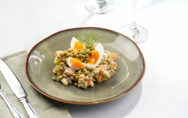 Олів'є з меншою кількістю калорій — хелсі-версія новорічного салату зі звичним набором інгредієнтів, але м’якшою заправкою. У рецепті не використовуємо м'ясо і майонез.