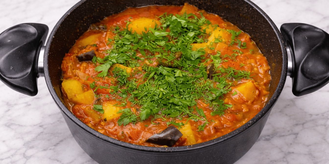 Для любителів овочів це рагу стане справжньою знахідкою. Кабачки, баклажани, помідори та перець обсмажуються з додаванням улюблених спецій і тушкуються у власному соку. Ця смачна та корисна страва готується за 30 хвилин.