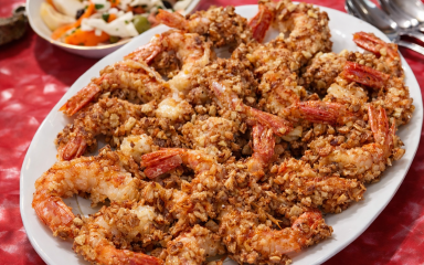 Які способи приготування креветок у топі? Це смажені креветки в соєвому соусі та креветки з овочами. Але горіхова паніровка створює ніби «панцир», який зберігає морепродукти соковитими.
