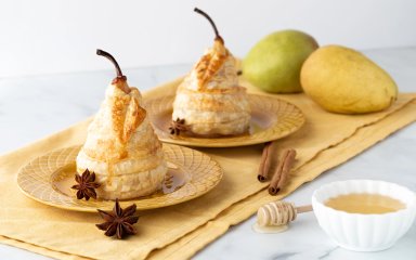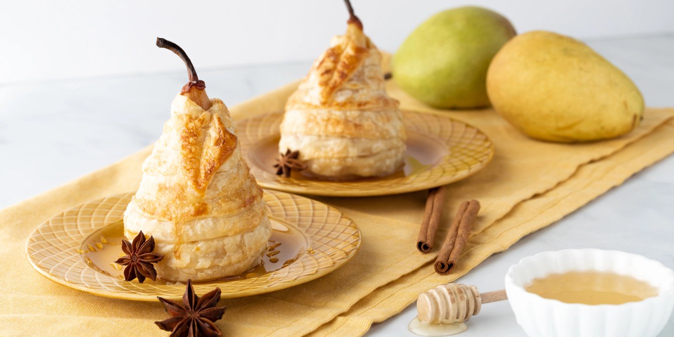 Груші з сиром брі в листковому тісті — це незвичний фруктовий десерт, в якому цілу грушу начиняють сиром, а потім накривають тістом і випікають. У духовці груша стає м’якою, брі — тягучим, а мед додає фінальний солодкий акцент.