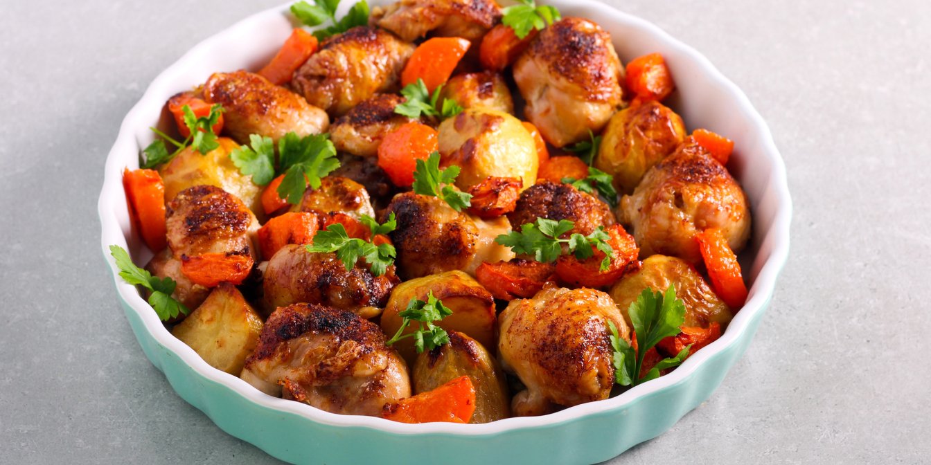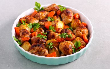 Що приготувати на вечерю, коли зовсім немає ідей? Рагу з запеченого м’яса з овочами — гарний вибір збалансованої та ситної страви. У цьому рецепті м’ясо (курячі стегна або яловичина) спочатку запікається, а потім готується разом з овочами.