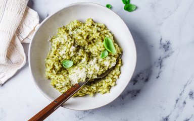 Може здатися, що соус песто створений лише для поєднання з пастою. Але варто тільки скуштувати його з рисом, як ти забудеш про інші мікси. Ризото з песто має ніжну кремову консистенцію та яскравий смак базиліку.
