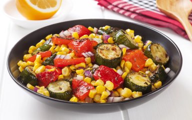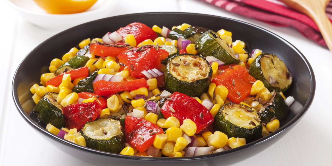 Салат із запечених овочів з кукурудзою готується просто: болгарський перець, томати, цибулю та цукіні нарізають шматочками та запікають з олією та паприкою. Після приготування овочі остуджують, поєднують з консервованою кукурудзою та зеленню — корисна страва готова. Вона підходить для вегетаріанців, веганів, а також для тих, хто дотримується безглютенової чи безлактозної дієти.