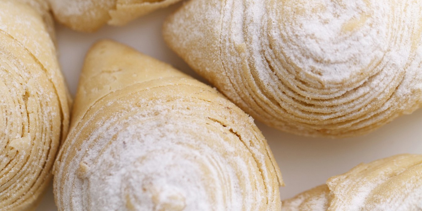 Печиво бадамбура довгасте, тому формувати його потрібно у формі пиріжків. Тісто розділимо на 8-9 однакових шматочків, тонко розкачаємо. Кожен шар змастимо розтопленим вершковим маслом, складемо в стопку та скрутимо в рулет.